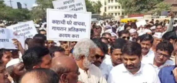या मोर्चात गावकऱ्यांनी मोठ्या संख्येने सहभागी व्हावे, असे आवाहन काँग्रेसचे जिल्हाध्यक्ष आ. सतेज पाटील यांनी केले होते, त्याला उत्स्फूर्त प्रतिसाद देत नागरिकांनी मोठ्या संख्येने उपस्थिती दर्शवली.गायरानमधील अतिक्रमण काढण्याचे आदेश न्यायालयाने शासनाला दिल्यामुळे राज्य शासनाने अतिक्रमण काढण्याचा निर्णय घेतला आहे. त्याची प्रभावीपणे अंमलबजावणी करण्याच्या सूचना सर्व जिल्हाधिकारी, मुख्य कार्यकारी अधिकारी यांना देण्यात आल्या आहेत. त्यानुसार जिल्हा प्रशासनाच्या वतीने अतिक्रमण काढण्याची जोरदार तयारी सुरू आहे. यामुळे जिल्ह्यातील लाखो नागरिक बेघर होणार आहत. त्यामुळे या निर्णयाचा पुनर्विचार करावा, अशी याचिका राज्य शासनाने सर्वोच्च न्यायालयात सादर करावी, यासाठी हा मोर्चा काढण्यात आला आहे. दसरा चौकातून सुरुवात झालेला हा मोर्चा जिल्हाधिकारी कार्यालयासमोर मोर्चा आल्यानंतर सर्व पक्षांच्या प्रमुखांची येथे भाषणे होणार आहेत.