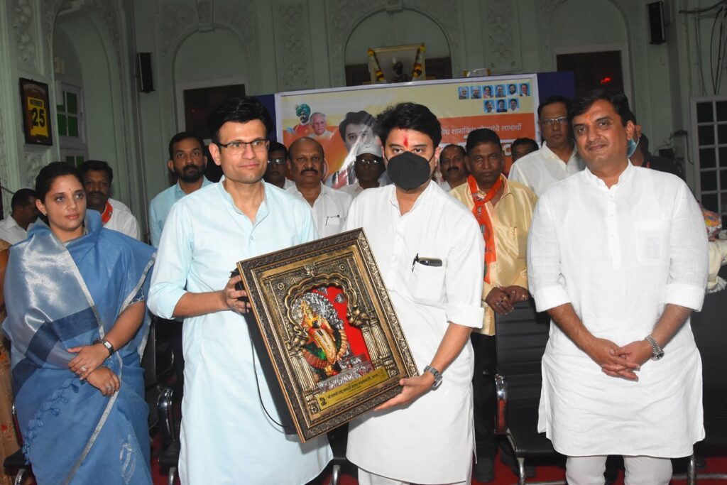 जनसेवा हाच घाटगे घराण्याचा धर्म* यावेळी सिंधिया यांनी ग्वाल्हेरचे सिंधिया व कागलच्या घाटगे घराण्याचे ऋणानुबंध असल्याचे सांगत त्यांना उजाळा दिला. स्व माधवराव सिंधिया व स्व राजे विक्रमसिंह घाटगे यांच्या आठवणींनाही त्यांनी उजाळा दिला .या घराण्याने जनसेवा हाच धर्म मानून पिढ्यानपिढ्या काम केले आहे. हाच वारसा राजे समरजितसिंह घाटगे समर्थपणे चालवीत आहेत. असे गौरवोद्गार काढले.