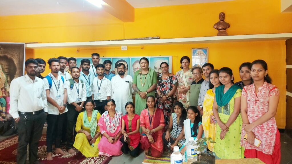 कोल्हापूर: सायबर महाविद्यालयाच्या दिनकरराव शिंदे समाजकार्य विभागामार्फत मैत्री या तृतीयपंथीयांच्या हक्कांसाठी काम करणाऱ्या संस्थेच्या भेटीप्रसंगी बोलतांना या संस्थेच्या अध्यक्षा मयुरीताई आळवेकर यांनी तृतीयपंथीयांच्या जीवनातील विविध आव्हानात्मक प्रसंगाची मांडणी करतांना आमच्या समाजाप्रती विविध स्तरांवरुन विशेषतः समाजकल्याण खात्यामार्फत उपक्रम राबवले जात असून या सर्व सकारात्मक घटनांमुळे आमच्याही जीवनात परिवर्तन होत असल्याचे नमूद केले.