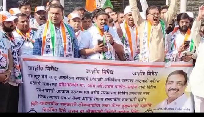 कागल : राष्ट्रवादीचे नेते आमदार जयंत पाटील यांच्या निलंबनाच्या निषेधार्थ कागलच्या ऐतिहासिक गैबी चौकात राष्ट्रवादी काँग्रेस पदाधिकारी आणि कार्यकर्त्यांनी जोरदार निदर्शने देत आंदोलन केले.