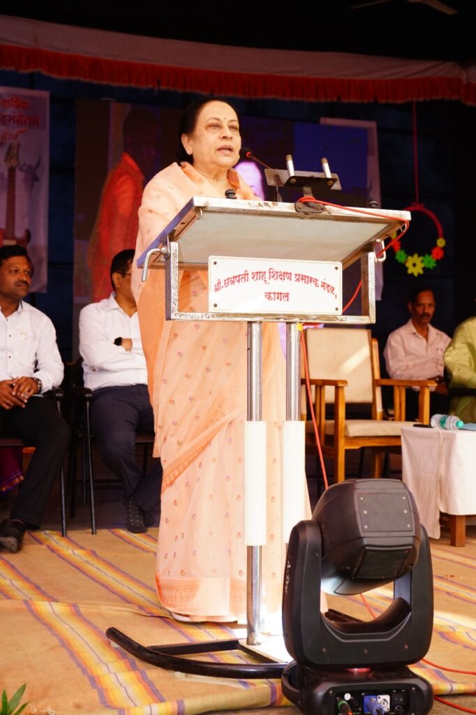 यावेळी मार्गदर्शन करताना शाहू कारखान्याच्या अध्यक्षा श्रीमती सुहासिनीदेवी घाटगे म्हणाल्या की लहान विद्यार्थ्यांमधील सुप्त कलागुणांना व्यासपीठ उपलब्ध करून देण्यासाठी शाहू ग्रुपच्या माध्यमातून नेहमीच पाठबळ दिले जाईल.