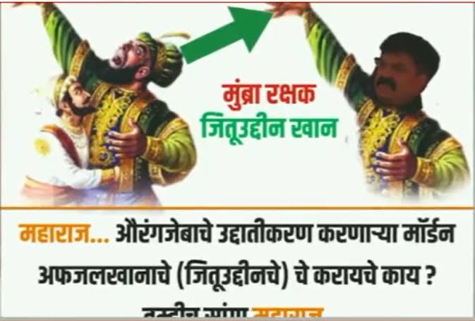 मुंबई : भांडूपमध्ये जितेंद्र आव्हाड यांच्या विरोधात लागलेल्या बॅनरवर छत्रपती शिवाजी महाराज हे अफझल खानाचा कोथळा बाहेर काढतानाचे छायाचित्र असून, बाजूलाच जितेंद्र आव्हाड हे अफजल खानांसारखे दाखविण्यात आले होते, त्यामुळे खळबळ उडाली होती.