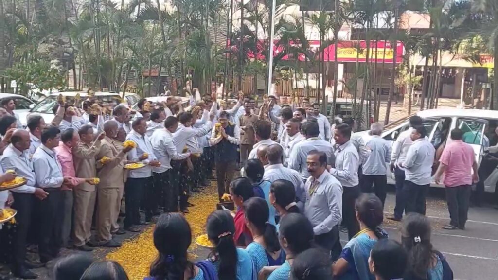ईडीकडून सुटका झालेल्या अधिकाऱ्यांचे कोल्हापुरात पुष्पवृष्टी करून जंगी स्वागत