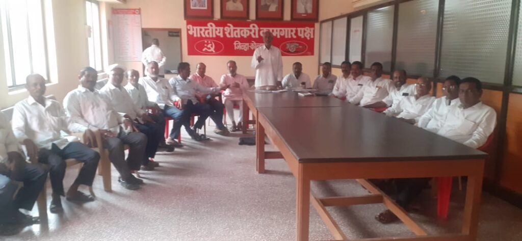 शेतकरी कामगार पक्षाच्या वतीने कृषी उत्पन्न बाजार समिती निवडणूक लढवाण्याबाबत निर्धार करण्यात आला. त्यानुसार पक्षाच्या वतीने सर्व गटातून अर्ज दाखल केलेले आहेत. पक्षाचे करवीर तालुका चिटणीस भाई केरबा भाऊ पाटील यांनी निवडणूकीच्या रणणिती संदर्भात यावेळी मार्गदर्शन केले. यावेळी भाई भारत पाटील आणि भाई एकनाथ पाटील यांनी मनोगत व्यक्त केले. बैठकीस राधानगरी तालुका चिटणीस अंबाजी पाटील, मध्यवर्ती समिती सदस्य बाबासाहेब देवकर, अमित कांबळे, दत्ता पाटील, कुमार जाधव, संभाजी पाटील, मोहन पाटील, सचिन पाटील, तुकाराम खराडे, विष्णुपंत एकशिंगे, राजेंद्र मगदूम, पांडुरंग वाकरे, राजेंद्र देशमाने आदी मान्यवर उपस्थित होते.