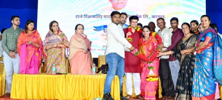अध्यक्षस्थानी शाहू साखर कारखान्याच्या अध्यक्षा सुहासिनीदेवी घाटगे होत्या.यावेळी प्रविणसिंहराजे घाटगे, सौ.नंदितादेवी घाटगे, वीरेंद्रसिंह घाटगे, श्रेयादेवी घाटगे, अखिलेशराजे घाटगे, डिक्कीचे प्रसन्न भिसे,बिद्रीचे संचालक बाबासो पाटील,आरपीआयचे जिल्हाध्यक्ष उत्तम कांबळे,विठ्ठल पाटील यांची प्रमुख उपस्थिती होती. श्री घाटगे पुढे म्हणाले, नोकरी करणारे नव्हे तर नोकरी देणारे युवक घडविण्यासाठी राजे बँकेच्या विविध कर्ज योजना तसेच केंद्र राज्य शासन व डीकीच्या माध्यमातून बहुजन समाजातील तरुणांना व्यवसायामध्ये आणण्याची धोरण आम्ही मागील वर्षात निश्चित केले. यामध्ये आम्ही यशस्वी झालो असून व्यवसाय करू इच्छिणाऱ्या तरुणांना प्रोत्साहन दिलेयामधून 1172 नवउद्योजक घडले याचा आम्हाला सार्थ अभिमान आहे.पुढील वर्षात आणखी एक हजार हून अधिक युवकांना व्यवसायात आनुन त्यांना स्वावलंबी बनवण्यासाठी आम्ही प्रयत्नशील राहणार आहोत.आज स्व.राजसाहेब असते तर त्यांनाही या गोष्टीचा मोठा अभिमान वाटला असता. स्थानिक पातळीवर यशस्वी झालेले हे उद्योजक भविष्यात इतरांसाठी ब्रँड अँबेसिडर ठरतील असा विश्वासही त्यांनी व्यक्त केला.