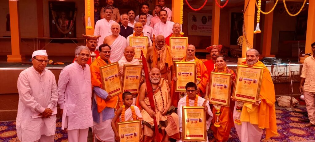 यामध्ये वेद शास्त्र मल्लारी विष्णू धर्माधिकारी यांच्या नावे वैदिक पुरस्कार सुशांत वासुदेव वझे, गोवा, श्रीपाद शास्त्री बंडोपंत जेरे – शास्त्री पुरस्कार मधुसुदन पेन्ना, रामटेक, नरहरबुआ कराडकर – कीर्तनकार पुरस्कार अशोक गणेश उपाध्ये, ठाणे, श्रीपाद सीताराम गोसावी – स्थानिक वैदिक पुरस्कार प्रदीप जोशी, औदुंबर, विद्याशंकर भारती स्वामी- सामाजिक गौरव – विभागून दिलीप देशमुख, बीड, श्रीमती लक्ष्मीबाई आळतेकर – महिला कीर्तनकार – वंदना दिलीप जोशी, गोवा, वेद चुडामणी रंगनाथ आळतेकर – होतकरू विद्यार्थी पुरस्कार, विश्वंभर कानशुक्ले, नांदेड, वेदव्रत जोशी, बीड व प्रमोद कुलकर्णी, परभणी यांचा विशेष सन्मान करण्यात आला. शाल, श्रीफळ आणि रोख रक्कम असे पुरस्काराचे स्वरूप आहे. प्रसाद चिकसकर यांनी आभार मानले.दरम्यान, उद्या, शुक्रवारी दुपारी 12 महाप्रसाद, पालखी प्रदक्षिणा सायंकाळी 5 वाजता भक्तांच्या उपस्थितीत आयोजित केली आहे.