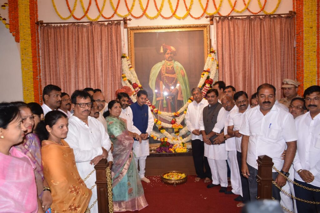 कोल्हापूर : राजर्षी छत्रपती शाहू महाराज यांच्या जयंतीनिमित्त आज कोल्हापूर जिल्ह्याचे पालकमंत्री दीपक केसरकर यांनी राजर्षी शाहू महाराजांचे जन्मस्थळ ‘लक्ष्मी विलास पॅलेस’ येथील राजर्षी शाहू महाराजांच्या प्रतिमेला पुष्पहार अर्पण करुन अभिवादन केले.