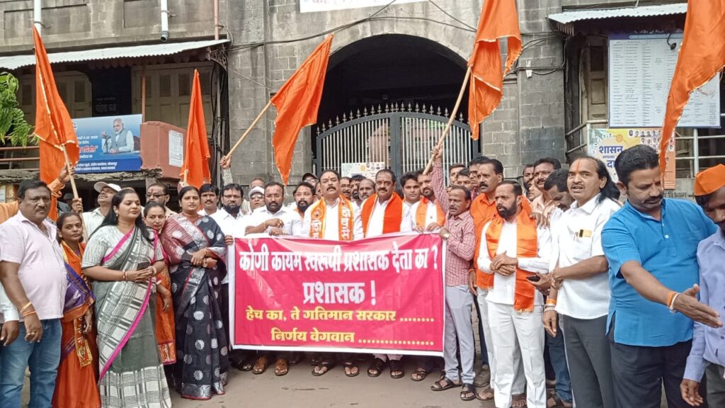 यावेळी राज्य शासनाविरोधात जोरदार घोषणाबाजी करण्यात आली.शिवसेना ठाकरे गटाच्या वतीने आज कोल्हापूर महानगरपालिकेला प्रशासक आयुक्त मिळावा, या मागणीसाठी आंदोलन करण्यात आले.यावेळी बोलताना पवार म्हणाले, कोल्हापूर महानगरपालिकेला गेल्या 28 दिवसांपासून कायमस्वरूपी प्रशासक नसल्यामुळे महापालिकेत बेभरोशाचा गलथान कारभार सुरू आहे. यामुळे कोल्हापूर वासिय त्रस्त झाले असून अनेक संकटांना त्यांना तोंड द्यावे लागत आहे. कोल्हापुरात मोठ्या प्रमाणात चिकनगुनिया, डेंगू इत्यादी संसर्गजन्य आजार मोठ्या प्रमाणात वाढत चालले आहेत. पाण्याचे नियोजन नसल्याने नदीला पाणी असून सुद्धा लोकांना प्यायला पाणी मिळत नाही. कचऱ्याचे ढीग दिवसेंदिवस वाढत चालले आहेत. कोल्हापुरातील रस्त्यांची अक्षरशः चाळण झाली असून वाहनधारक हैराण झाले आहेत. एकंदरीतच कोल्हापूर महानगरपालिकेमध्ये प्रशासकीय कारभार पूर्णपणे कोलमडला असल्याने अनेक समस्यांना तोंड द्यावे लागत आहे.महापालिकेत मोठमोठे टेंडर निघाले आहेत ,निविदा निघाल्या आहेत. ठेकेदारांना काम दिल्याशिवाय महापालिकेला आयुक्त देणार नाही का असा सवालही पवार यांनी उपस्थित केला आहे.यावेळी जिल्हाप्रमुख विजय देवणे, शहर प्रमुख सुनील मोदी,मंजित माने,शांताराम पाटील,युवराज खंडागळे, विशाल देवकुळे, दत्ताजी टिपूगडे,अवधूत साळोखे,दीपक रेडकर, दीपक गौड,दिनेश साळोखे,किरण पडवळ, स्मिता सावंत, स्वरूपा खुरंदळे, प्रतिज्ञा उतुरे, दीपाली शिंदे, प्रीती क्षीरसागर यांच्या सह मोठ्या संख्येने कार्यकर्ते उपस्थित होते.