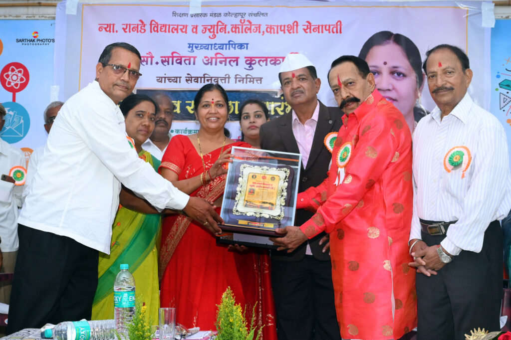 येथील न्यायमूर्ती रानडे विद्यालयात आयोजित मुख्याध्यापिका सविता अनिल कुलकर्णी यांच्या सेवानिवृत्ती च्या कार्यक्रमात बोलत होते. ते म्हणाले आपल्या ३४ वर्षाच्या सेवेत शिक्षण प्रसारक मंडळाने दिलेली जबाबदारी यशस्वी रीत्या पेलली .आपल्या सेवा काळात शिस्तप्रिय काम करत गावकरी व माजी विद्यार्थी यांच्याशी स्नेहबंध जोपासला . तो वाखणण्या सारखा आहे.