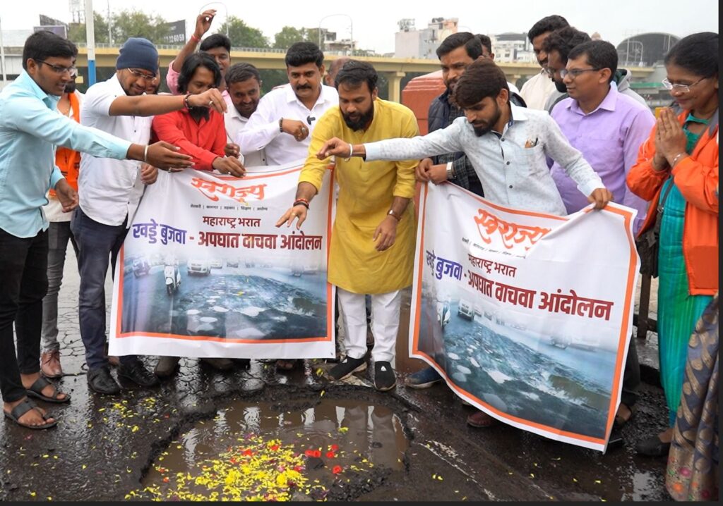 स्वराज्य पक्षाच्या वतीने राज्यभरात १०० ठिकाणी आंदोलन करण्यात आले, यातील पुणे शहरात खड्ड्यांच्या विरोधात ‘खड्डे बुजवा -जीव वाचवा’ आंदोलन करण्यात आले. RTO चौक व अलका चौक येथे प्रामुख्याने आंदोलन करण्यात आले. RTO चौक येथून जुन्या बाजारपेठेकडे जाणाऱ्या रस्त्यावर खड्ड्यांची चाळण झालेली आहे. या रस्त्यावर ‘स्वराज्य’ च्या वतीने खड्ड्यांना हार व फुले वाहण्यात आली, खड्ड्यांच्या भोवती रांगोळी काढून, साचलेल्या पाण्यात होडी सोडण्यात आल्या, सोबतच खड्ड्यांचे आशीर्वाद घेवून ‘आमचे रक्षण कर’ असे उपहासात्मक विनंती करण्यात आली. ‘सगळे नेते एका पक्षात, रस्ते नाही कोणाच्या लक्षात’, खड्डे बुजवा – जीव वाचवा, स्वराज्य संघटनेचा विजय असो! अशा घोषणा यावेळी देण्यात आल्या.