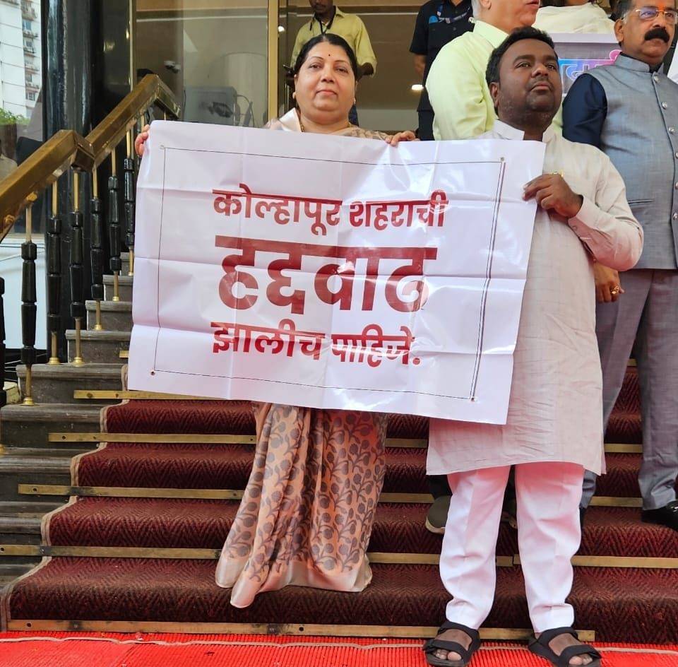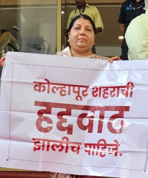 हद्दवाढीसाठी मुख्यमंत्री व नगर विकासमंत्री यांना निवेदन, अधिवेशनात लक्षवेधी, तारांकित प्रश्न आणि आंदोलन करूनही शासन कोल्हापूर शहराच्या हद्दवाढीच्याबाबत सकारात्मक निर्णय घेत नसल्याबद्दल आमदार जाधव यांनी संताप व्यक्त केला.आमदार जयश्री जाधव म्हणाल्या, कोल्हापूर शहराच्या हद्दवाढीसाठी माझे पती व दिवंगत आमदार चंद्रकांत जाधव आग्रही होते. त्यांच्या माघारी पोटनिवडणुकीतील विजयानंतर कोल्हापूर शहराची हद्दवाढ झालीच पाहिजे, यासाठी तत्कालीन मुख्यमंत्री उद्धवजी ठाकरे, विद्यमान मुख्यमंत्री व नगर विकास मंत्री एकनाथजी शिंदे यांना निवेदन दिले होते. मी आमदार झाल्यापासूनच्या प्रत्येक अधिवेशनात तारांकित प्रश्न, लक्षवेधीच्या मधून शासनाचे लक्ष वेधले होते. तसेच हिवाळी अधिवेशनात लक्षवेधीच्या माध्यमातून सभागृहात हा प्रश्न उपस्थित केला होता. मात्र, कोल्हापूर शहराच्या हद्दवाढीबाबत शासन सकारात्मक नसल्याचे दिसून येत आहे. हद्दवाढीबाबत वारंवार प्रश्न उपस्थित करूनही, कोल्हापूरच्या बाबतीत शासनाची भूमिका दुप्पटीपणाची आहे. इतर शहरांची हद्दवाढ अनेक वेळा होते. परंतु कोल्हापूर शहराच्या हद्दवाढीचा प्रश्न गेल्या पन्नास वर्षापासून रखडलेला आहे. याकडे शासनाचे पुन्हा एकदा लक्ष वेधण्यासाठी आज विधान भवनाच्या पायऱ्यावरती आंदोलन करत, शासन विरोधात तीव्र संताप व्यक्त केला आहे. गेल्या पन्नास वर्षापासून कोल्हापूर महानगरपालिकेची हद्दवाढ रखडली आहे. कोल्हापूरनंतर स्थापन झालेल्या अनेक महानगरपालिकांची एकदा-दोनदा नव्हे, तर अनेकदा हद्दवाढ झाली. त्यामुळे त्या शहरांचा विकास झाला. परंतु कोल्हापूर शहराची हद्दवाढ झाली नसल्याने, राज्य व केंद्र सरकारच्या विविध योजनेतून निधी मिळवण्यास अडचणी येत आहेत. परिणामी शहराच्या सर्वांगीण विकास खुंटला आहे. कोल्हापूरची हद्दवाढ झालीच पाहिजे अशी जनभावना आहे. आणि त्यासाठी नागरिकांनी वारंवार आंदोलने केले आहे. परंतु शासनाने त्याची कोणतीही दखल घेतलेली नाही. राज्याच्या सर्वोच्च सभागृहात या प्रश्नावर मी वारंवार आवाज उठवला आहे. मात्र, त्याकडेही शासन दुर्लक्ष करीत असल्याचे आमदार जाधव यांनी सांगितले.कोल्हापूर शहराच्या सर्वांगीण विकासासाठी हद्दवाढ करणे गरजेचे बनले आहे. कोल्हापूर शहराच्या हद्दवाढीच्या प्रस्ताव शासनाकडे प्रलंबीत आहे. या प्रस्तावास शासनाने त्वरित मंजुरी द्यावी, ही माझी न्यायीक मागणी आहे. आज केवळ विधानभवनाच्या पायऱ्यांवर आंदोलन केले आहे. शासनाने त्वरित हद्दवाढ केली नाही तर भविष्यात हद्दवाढीसाठी कोल्हापूरतील जनतेसोबत तीव्र आंदोलन छेडण्याचा इशारा आमदार जाधव यांनी यावेळी दिला.