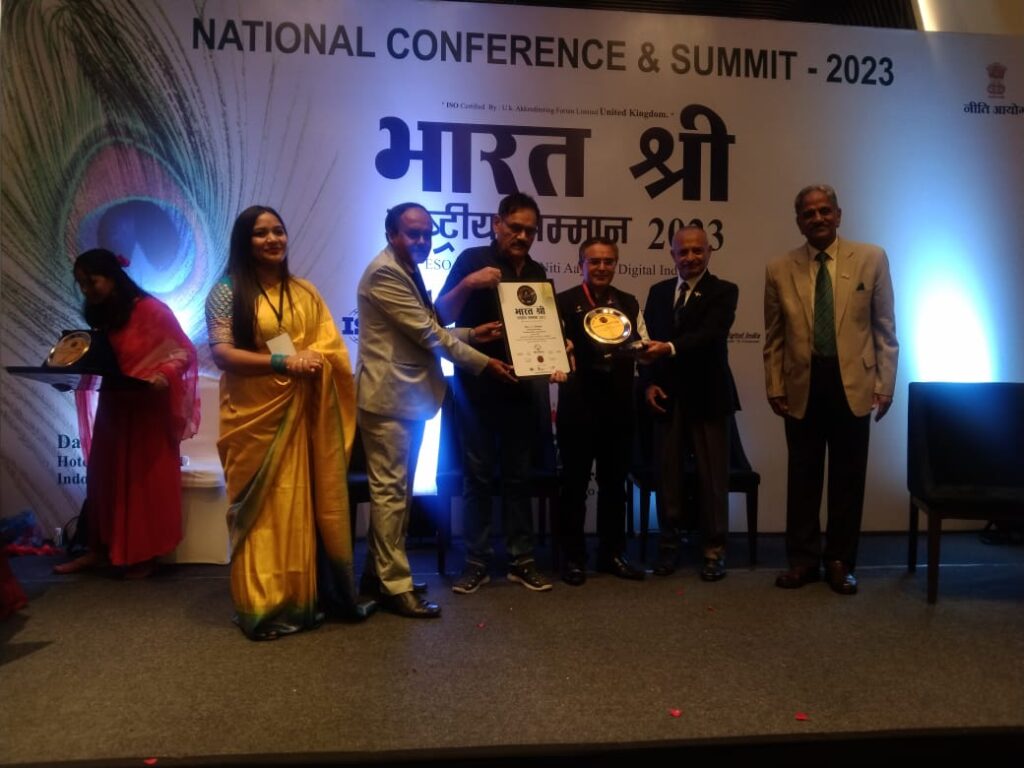 कोल्हापूर : अहमदनगर नगर येथील सनदी लेखापाल व सामाजिक क्षेत्रात अग्रेसर असलेले सनदी लेखापाल डॉ.शंकर अंदानी यांना अत्यंत प्रतिषठेचा राष्ट्रीय स्तरावरील भारतश्री अवॉर्ड समारंभपुर्वक नुकताच प्रदान करण्यात आला. या सोहोळ्यास प्रमुख अतिथी म्हणून एअर व्हाईस मार्शल समीर विश्वनाथराव बोराडे, प्रमुख सेलिब्रेटी बॉलीवूड स्टार मुस्ताख खान,विशेष पाहुणे म्हणून इंडियन आर्मीचे लेप्टनंट जनरल बी.एस. सिसोदिया आदी मान्यवर उपस्थित होते.