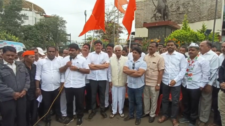 गडहिंग्लज : जालना येथे मराठा आरक्षण आंदोलकावर लाठीमाराच्या निषेर्धात आज सकल मराठा समाज वतीने गडहिंग्लज येथे बंद ची हाक दिली होती.येथील छत्रपती शिवाजी महाराज चौकात सकल मराठा समाज बांधव एकत्र आले होते. या आंदोलनात आमदार सतेज पाटील यांनी सहभाग घेत राज्य सरकारचा निषेध व्यक्त केला. दरम्यान आमदार सतेज पाटील यांनी जनसंवाद यात्रेची शहरातील पदयात्रा रद्द करून सकल मराठा समाजाला पाठींबा व्यक्त केला.