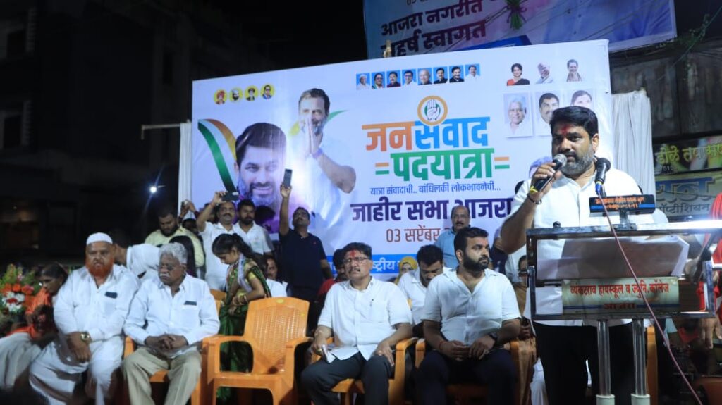 आजरा तालुक्यात आलेल्या जनसंवाद पदयात्रेला उस्फूर्त प्रतिसाद मिळाला.आजरा शहरातील संभाजी चौकात झालेल्या सभेत सतेज पाटील यांनी भाजपवर जोरदार टीका केली. प्रास्ताविक नगरसेवक अभिषेक शिंपी यांनी केले. राहुल गांधी यांच्या भारत जोडो धर्तीवर ही पदयात्रा निघाली आहे. पंतप्रधान मोदी यांनी केवळ स्वप्ने विकायचे काम केले आहे. दिलेली आश्वासने पूर्ण केलेली नाहीत.यावेळी गोकुळ संचालिका अंजना रेडेकर, बाजीराव खाडे यांनी मनोगत व्यक्त केले.