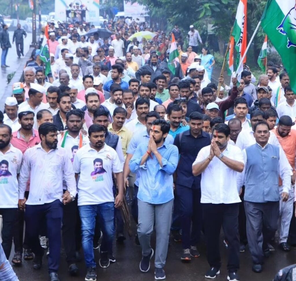 कोल्हापूर प्रतिनिधी: काँग्रेसचे नेते राहुल गांधी यांची भारत जोडो यात्रा अभूत पूर्व यशस्वी झाल्यानंतर तिसऱ्या टप्प्यातील ही पदयात्रा आज कोल्हापूर शहरातून काढण्यात आली. या जनसंवाद पदयात्रेस लोकातून अतिशय उत्स्फूर्त प्रतिसाद मिळाला . जिल्हा काँग्रेसचे अध्यक्ष आमदार सतेज पाटील आमदार ऋतुराज पाटील व आमदार जयश्री जाधव माजी आमदार मालोजीराजे छत्रपती यांनी रॅलीचे नेतृत्व केले…. दुपारी आपटे नगर येथून जनसंवाद पदयात्रेची सुरुवात झाली सरसेनापती संताजी घोरपडे चौक संभाजीनगर स्टॅन्ड इंदिरा सागर हॉल नंदीवाले चौक लाड चौक बिन खांबी गणेश मंदिर महाद्वार रोड पापाची तिकटी आर चौक मार्गे दसरा चौकात आली…