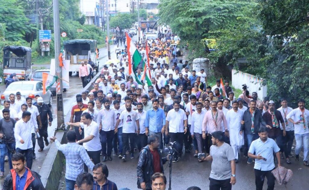 जिल्हा काँग्रेसचे अध्यक्ष आमदार सतेज पाटील आमदार ऋतुराज पाटील व आमदार जयश्री जाधव माजी आमदार मालोजीराजे छत्रपती यांनी रॅलीचे नेतृत्व केले…. दुपारी आपटे नगर येथून जनसंवाद पदयात्रेची सुरुवात झाली सरसेनापती संताजी घोरपडे चौक संभाजीनगर स्टॅन्ड इंदिरा सागर हॉल नंदीवाले चौक लाड चौक बिन खांबी गणेश मंदिर महाद्वार रोड पापाची तिकटी आर चौक मार्गे दसरा चौकात आली.