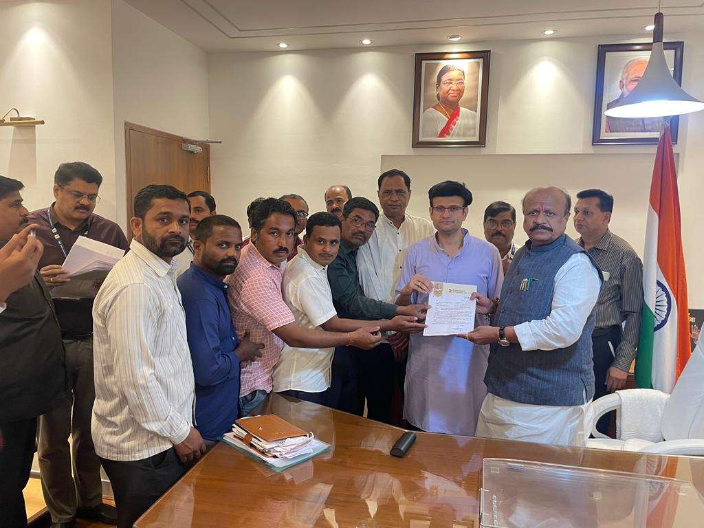 याबाबत संबंधितांना आदेश व्हावेत. अशी विनंती या निवेदनात घाटगे यांनी केली आहे. त्यावर मंत्री खाडे यांनी संबंधित आयुक्तांना याबाबत तात्काळ चौकशी करून कार्यवाही करणे बाबत आदेश दिले आहेत. यावेळी राजे बँकेचे चेअरमन एम.पी.पाटील यांच्यासह कर्मचारी संघटनेचे प्रतिनिधी उपस्थित होते.